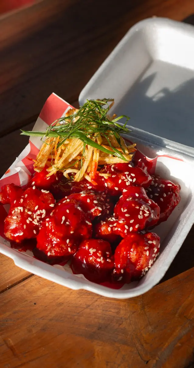 6 piezas de pollo en tempura, glaseado con nuestra salsa agridulce a base de piña